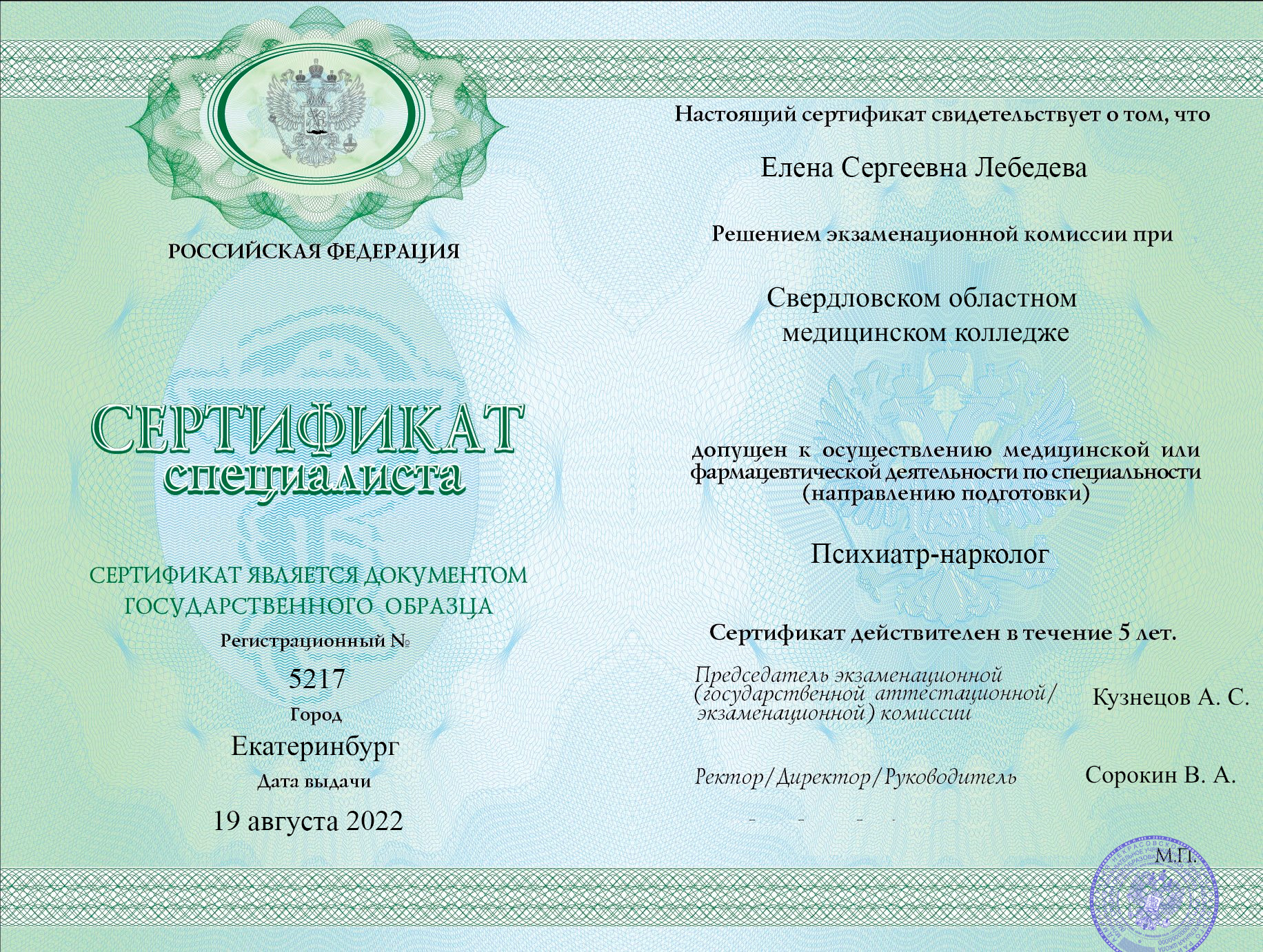 Елена Сергеевна Лебедева врач нарколог клиники доктора Стукаловой в Тихорецке